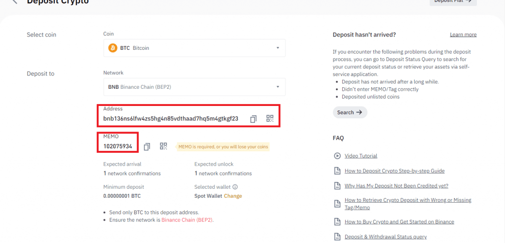 Alege rețeaua din care va proveni moneda aleasă, iar apoi copiază adresa și MEMO în exchange-urile din care vor sosi monedele.