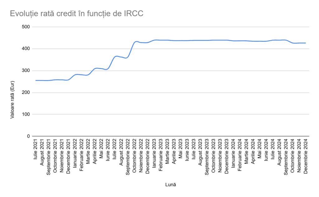 Valoarea IRCC-ului a crescut considerabil de la un minim istoric în 2021T2, de doar 1.08%, la un maxim istoric în 2024T2 de 5.99%.