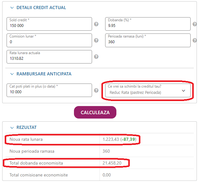 Așadar, atunci când faci o rambursare anticipată credit ipotecar, imobiliar, Primă Casă sau Noua Casă și poate chiar și unele de nevoi personale, costul pentru recalculare va fi 0 lei.