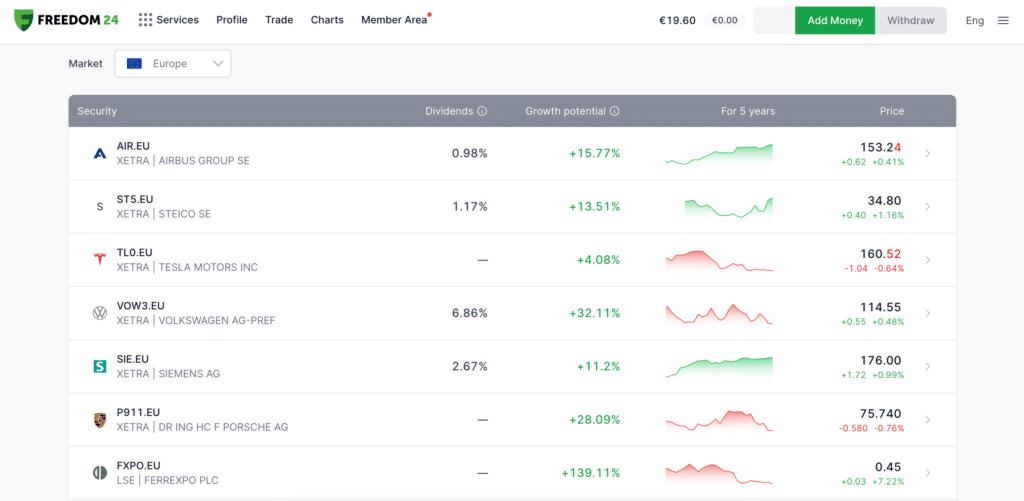 Dacă dorești să investești în companii plătitoare de dividende, credem că cea mai bună platformă prin care poți face asta este Freedom24.