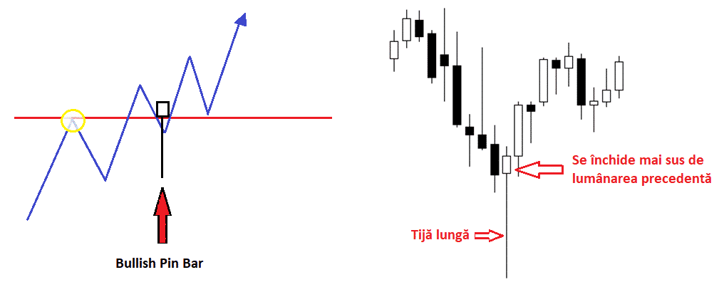 Ei bine, și pe graficul nostru, piața a găsit suport pe o fostă zonă de rezistență și așa a apărut acest Pin Bar despre care vorbeam puțin mai sus.