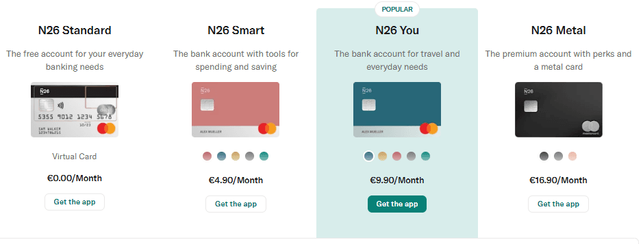 După cum prezentam și puțin mai sus, cei care vor dori (și vor putea) să își creeze un cont nou N26 vor putea opta pentru una dintre ele 4 variante disponibile: