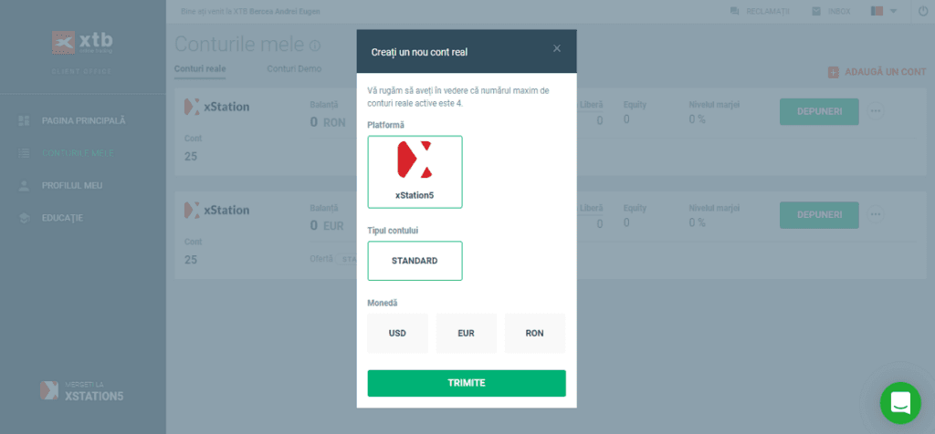 Deschiderea unui cont XTB